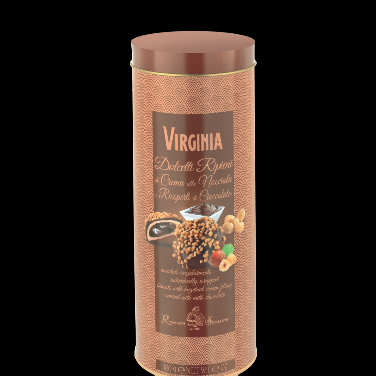 Pastries filled with Hazelnut Cream covered with Milk Chocolate in metal tin